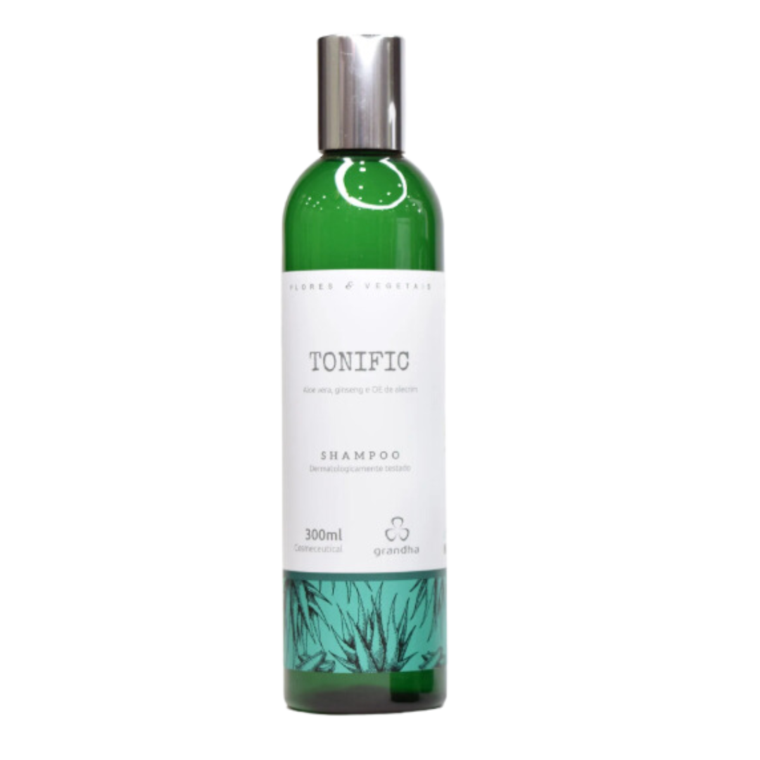Formulado com extratos concentrados de Aloe Vera e Ginseng, aliados ao óleo essencial de Alecrim, o Tonific Shampoo estimula o crescimento saudável, ativa a circulação no couro cabeludo e reduz a queda capilar causada por enfraquecimento dos fios.